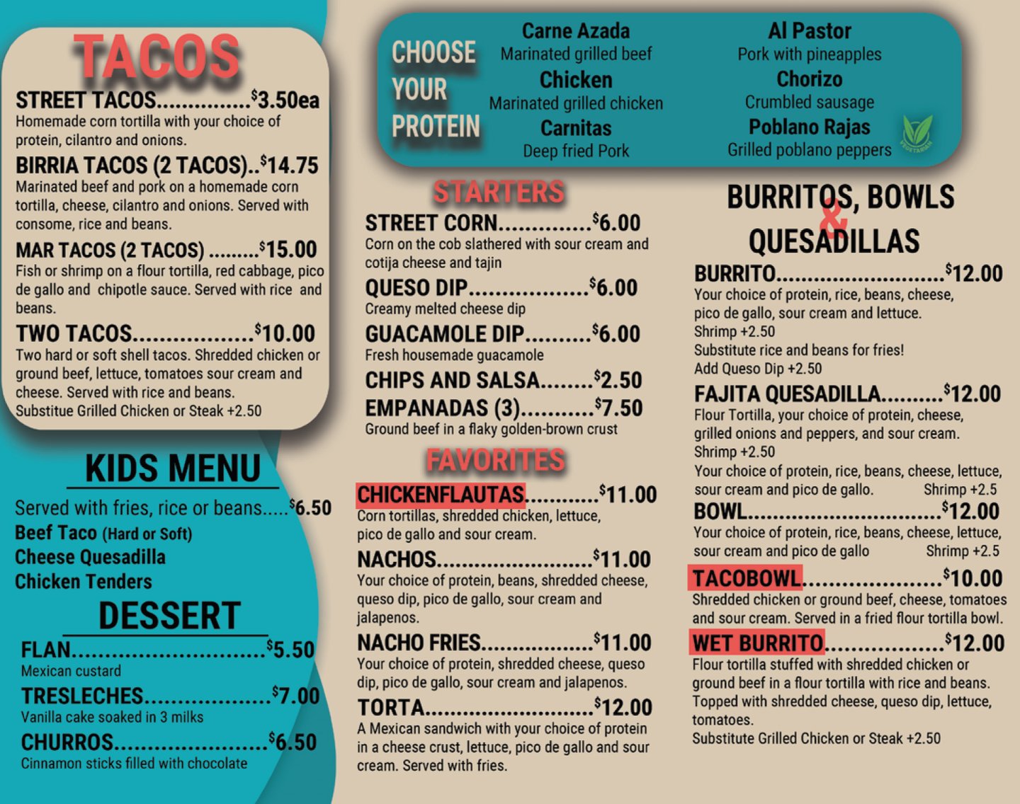 Where every dish is crafted with fresh and authentic ingredients. We are a family-owned taquería, proud to offer homemade food made with love and dedication. From our freshly made tortillas to our unique salsas, every detail is designed to provide you with an exceptional culinary experience. Come and delight your taste buds. We look forward to welcoming you!